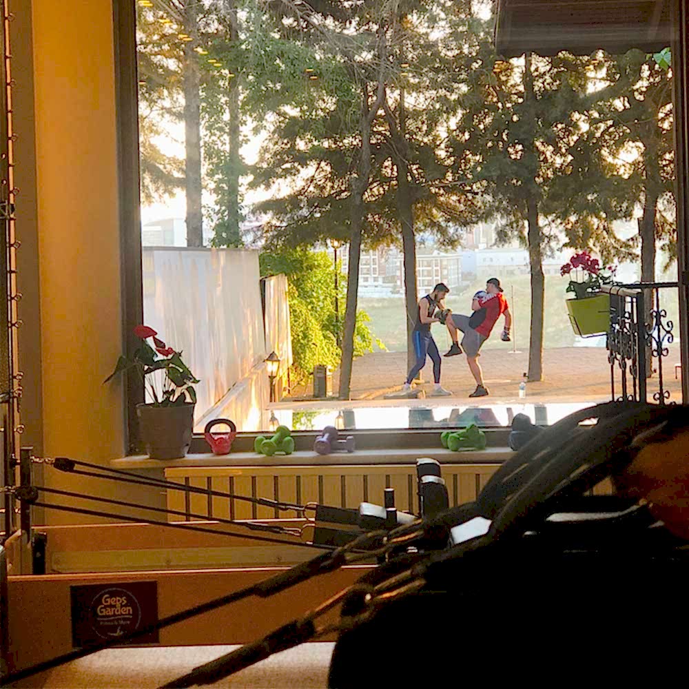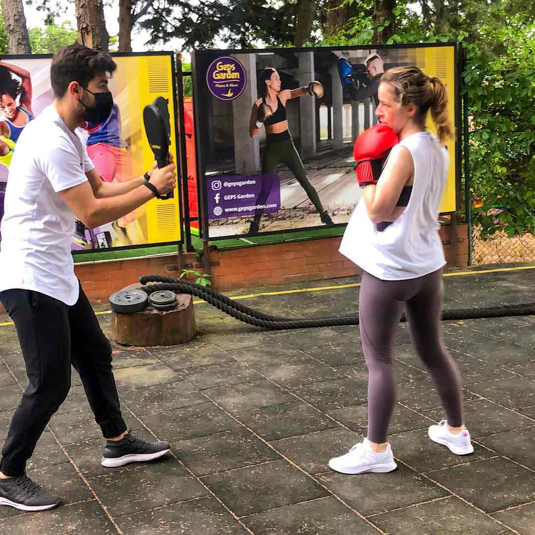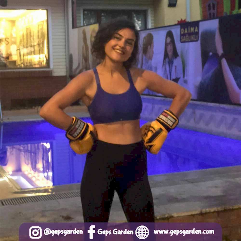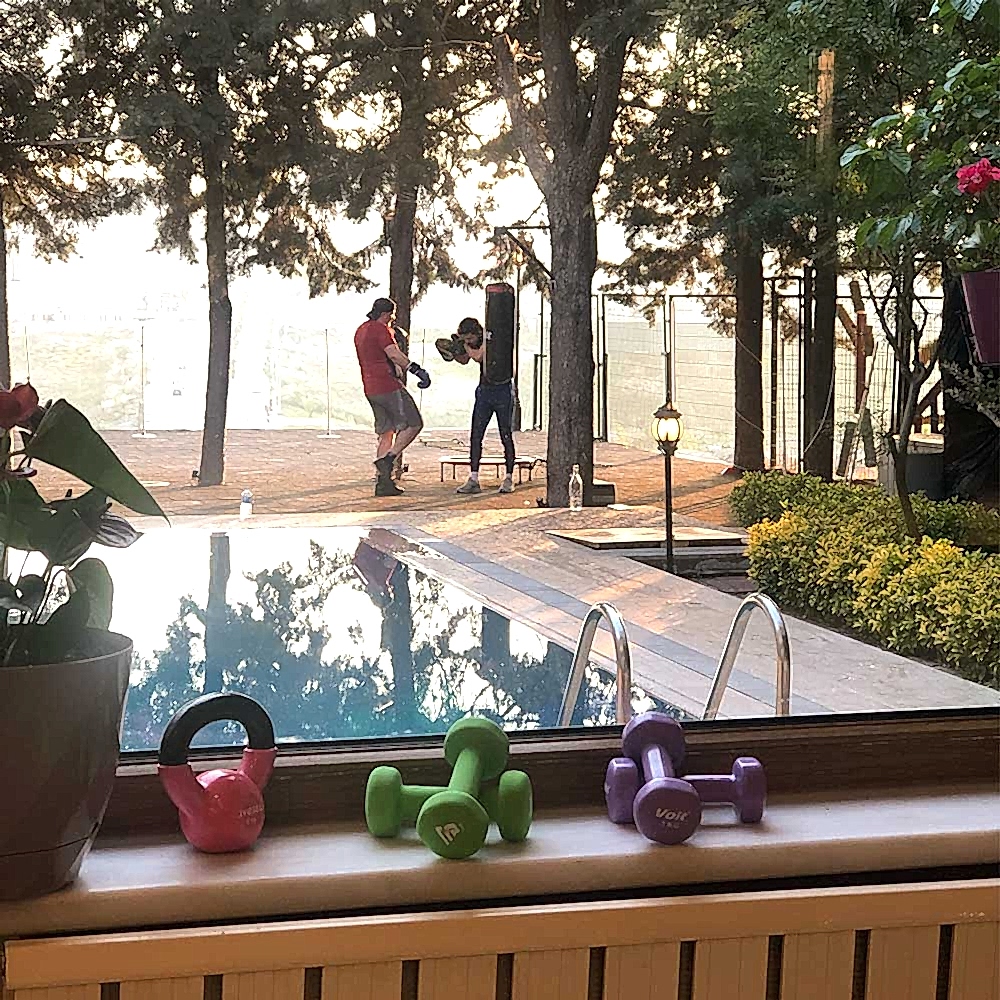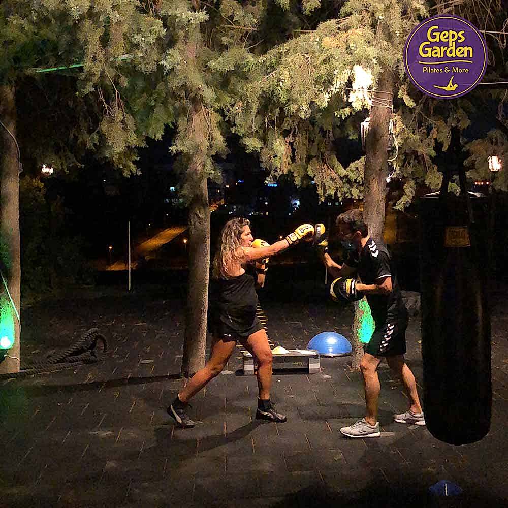 Geps Garden'ın çam ağaçları altındaki bahçesinde Milli sporcu eğitmenimiz eşliğinde